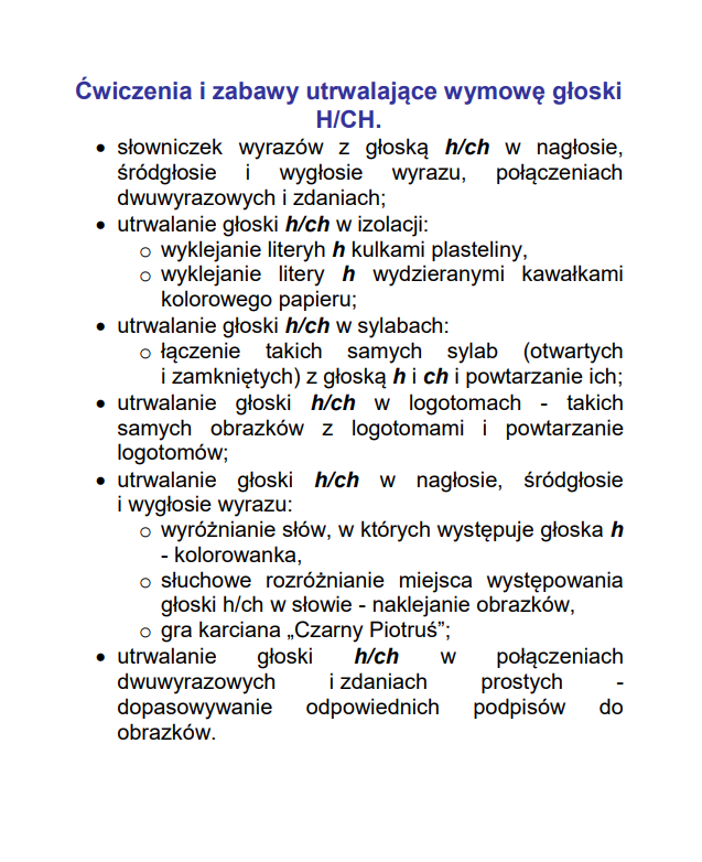 Ćwiczenia i zabawy utrwalające wymowę głoski H/CH: