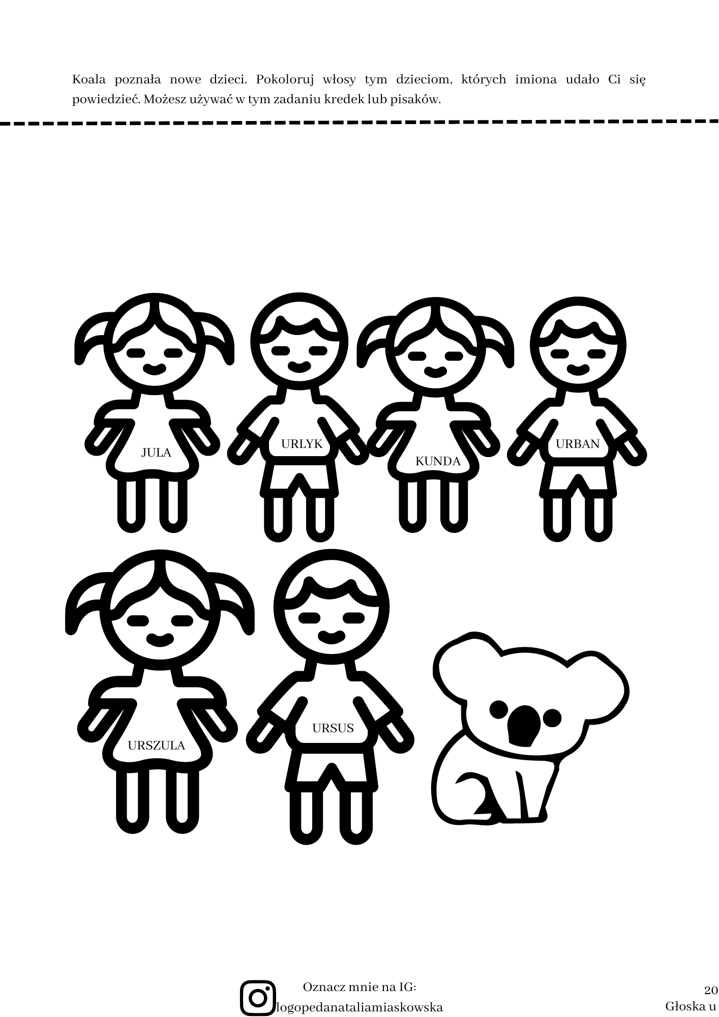 – zawiera kartę pracy z głoską “u” w zdaniach