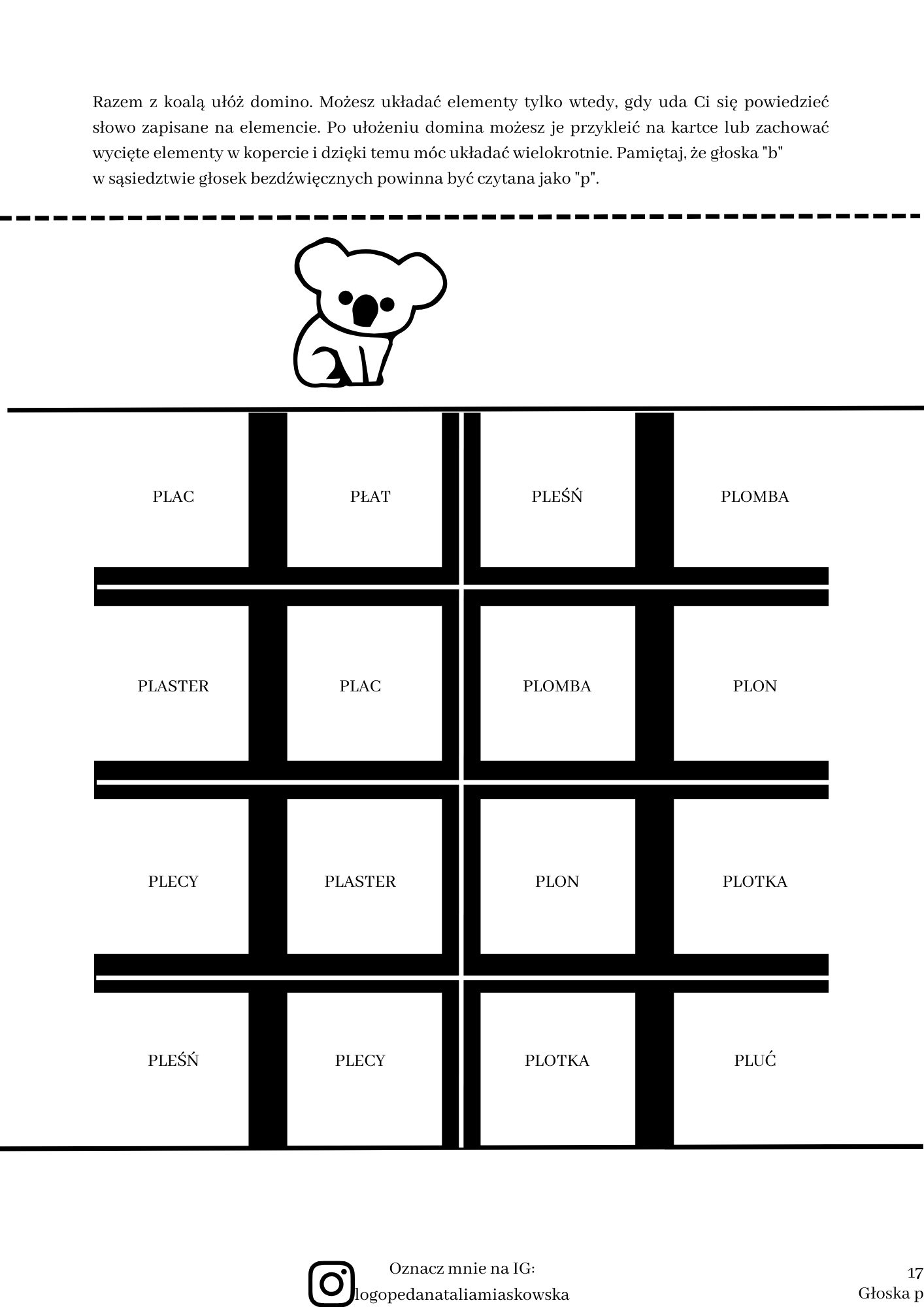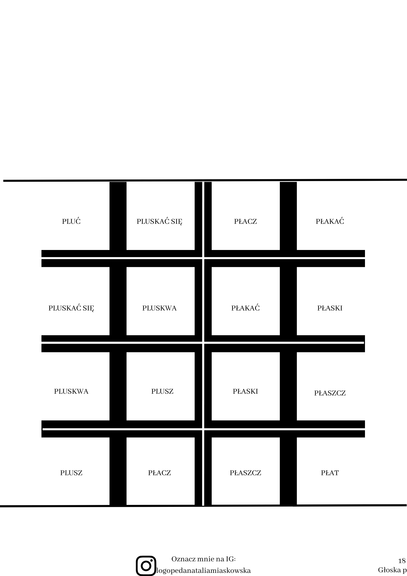 – zawiera kartę pracy z głoską “p” w sylabach, w których po głosce “p” następuje spółgłoska