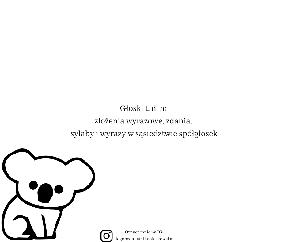 – kolejność ułożenia kart pracy w pace zgadza się z zalecaną kolejnością pracy podczas wywoływania i automatyzacji głosek „t”, „d”, „n”