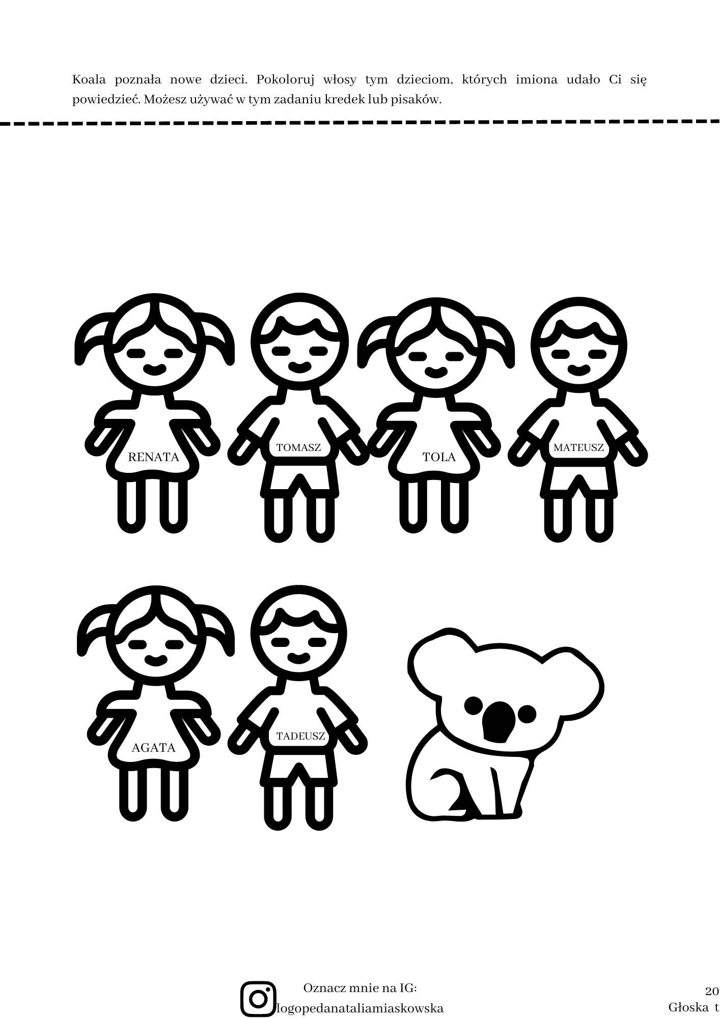 – karty pracy zawierają tylko czarno-białe obrazki, co ułatwia pacjentom pracę na materiale obrazkowym