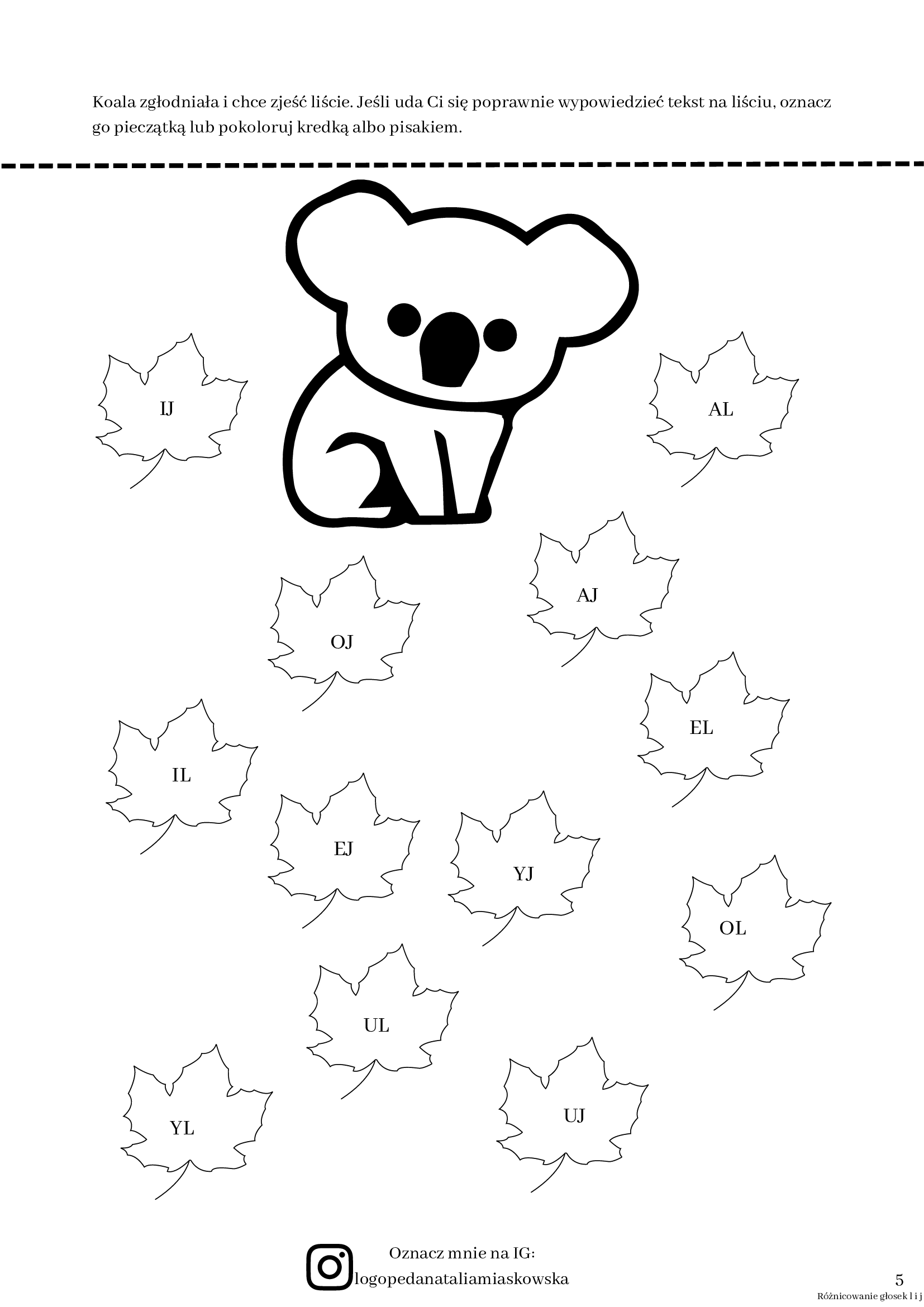 – zawiera kartę pracy z zakresu różnicowania głosek „l” i „j” w sylabach wygłosowych