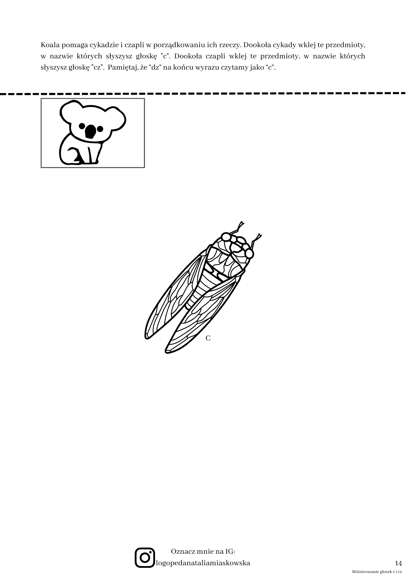 – 59 stron kart pracy do terapii logopedycznej z zakresu różnicowania głosek „c” i „cz”