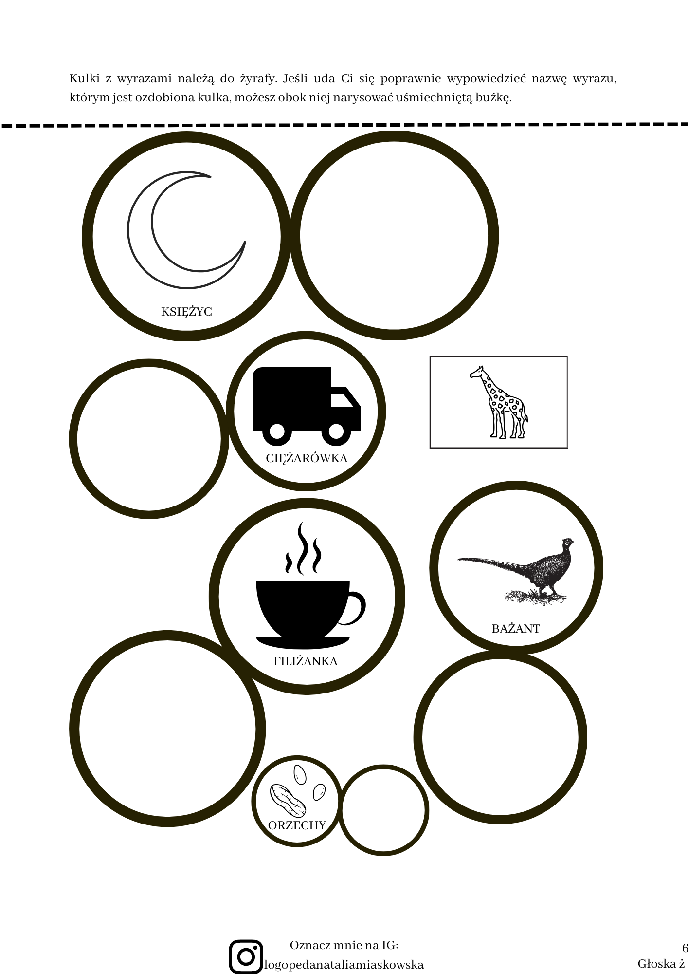– 41 stron kart pracy do terapii logopedycznej z zakresu głoski “ż”