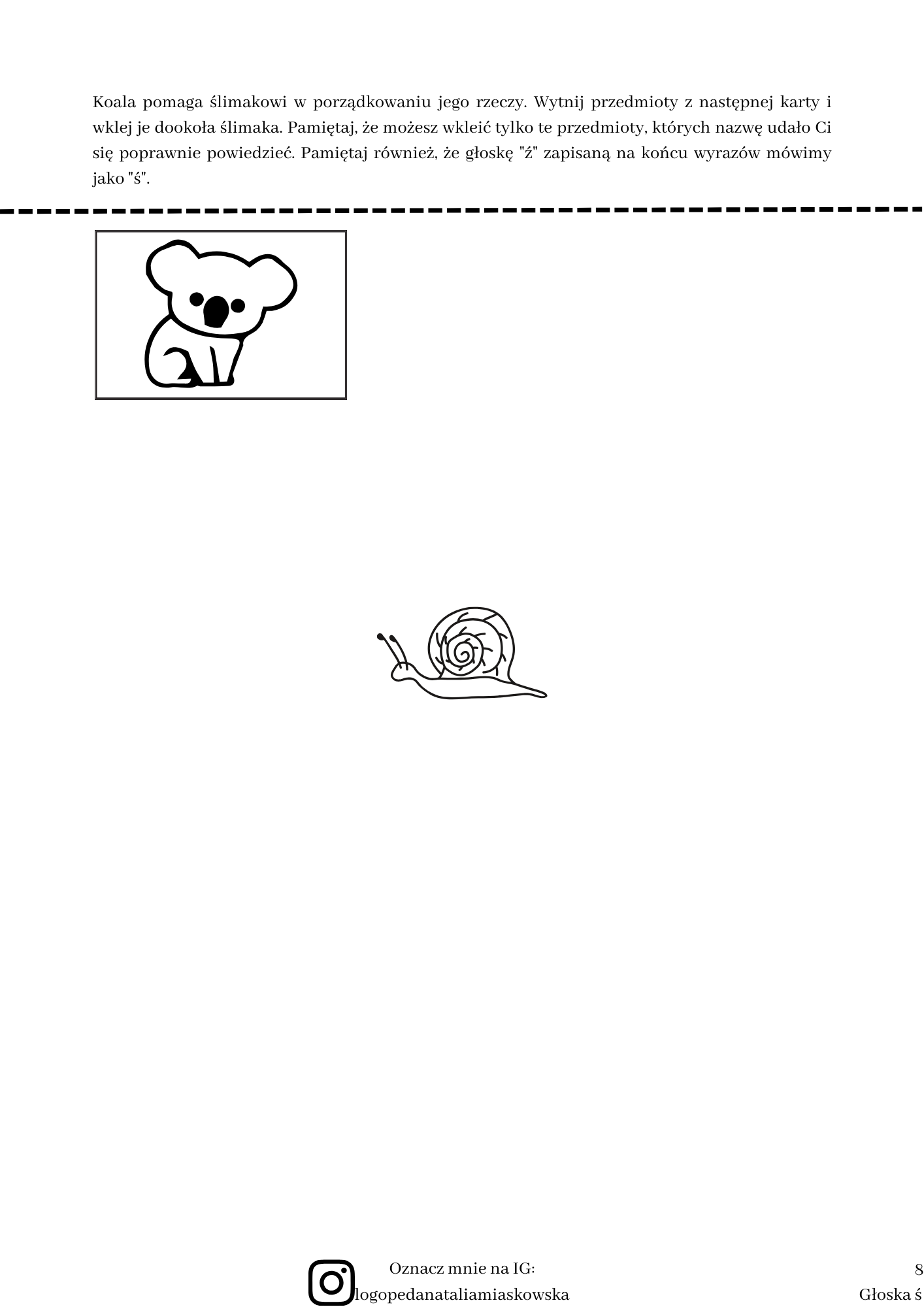 – 64 strony kart pracy do terapii logopedycznej z zakresu głosek „ś”, „ź”, „ć”, „dź”