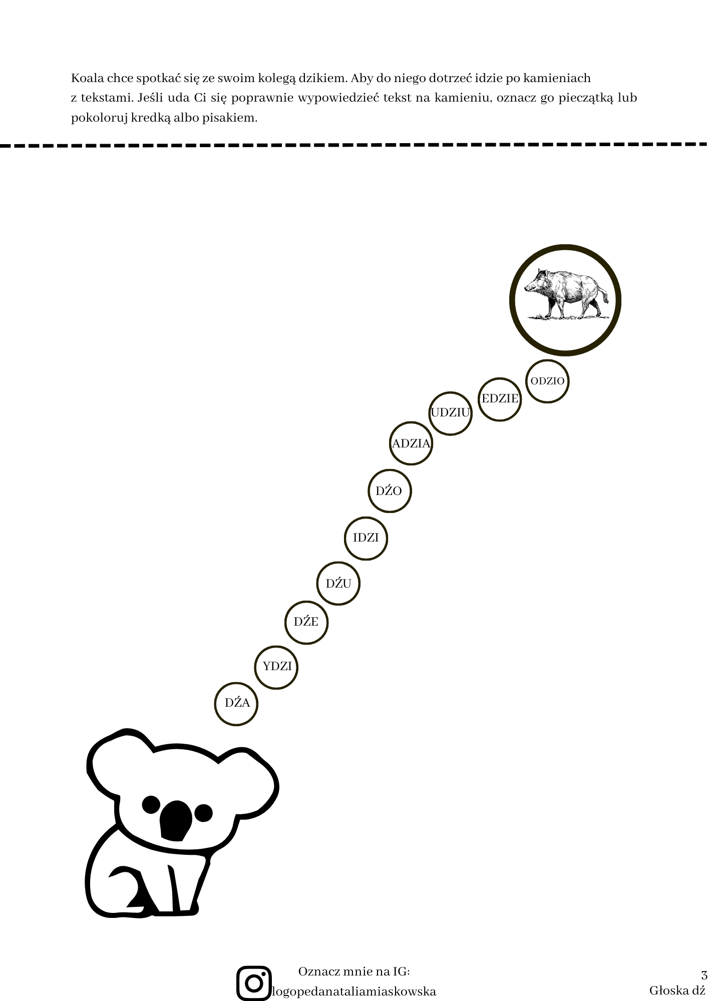 – zawiera kartę pracy z głoską “dź” w wyrazach w różnych pozycjach